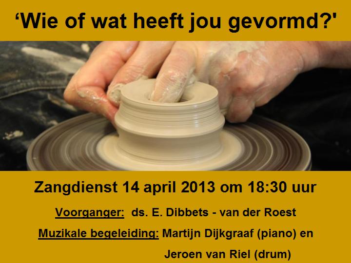 Zondag 14 april 2013 om 19:30ZangdienstVoorganger(s): Mw. ds. E. Dibbets- van der Roest