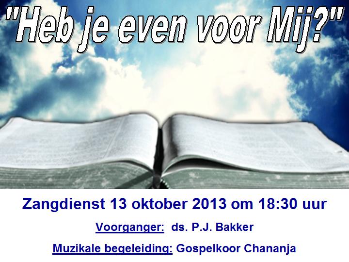 Zondag 13 oktober 2013 om 18:30ZangdienstVoorganger(s): Ds. P. Bakker