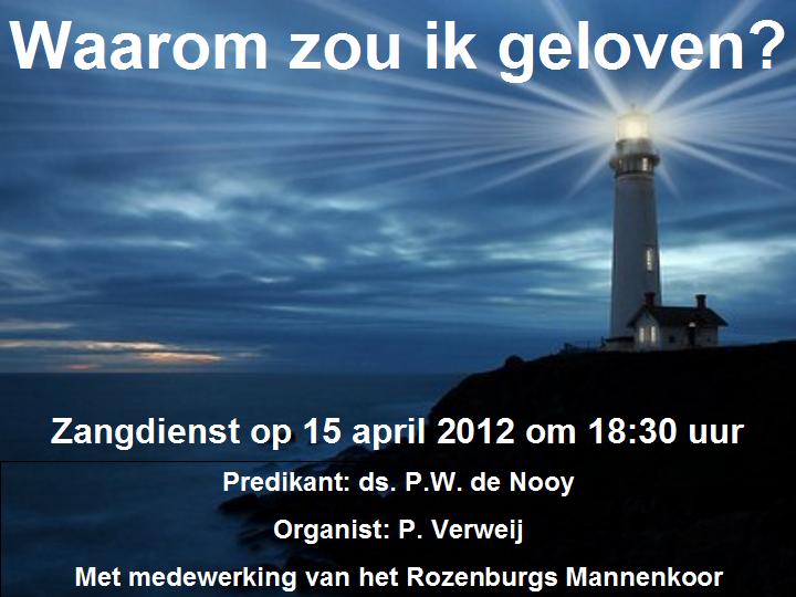 Zondag, 15 april aanstaande, is het al weer de laatste zangdienst van het winterseizoen 2011-2012.